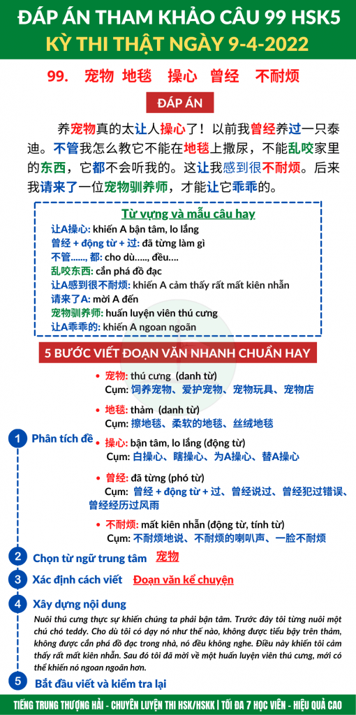 Câu 99: Viết đoạn dựa vào 5 từ cho trước: 宠物 地毯 操心 曾经 不耐烦