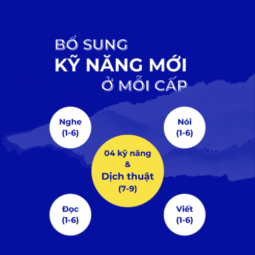 - Bậc 5: Nâng lên 4,316 từ vựng. Tập trung vào các chủ đề học thuật như kinh tế, môi trường, khoa học, lịch sử và viết luận ngắn trình bày quan điểm cá nhân. Yêu cầu cao hơn về tư duy và khả năng dịch chuyển ngữ cũng mượt hơn.