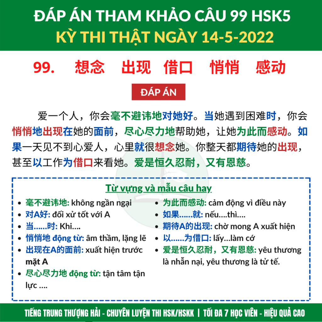 II. ĐÁP ÁN THAM KHẢO CÂU 99 HSK5 KỲ THI THẬT NGÀY 16-5-2022
