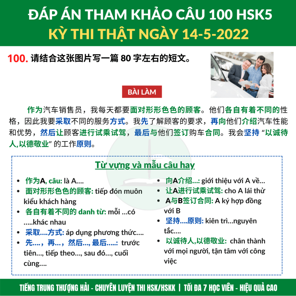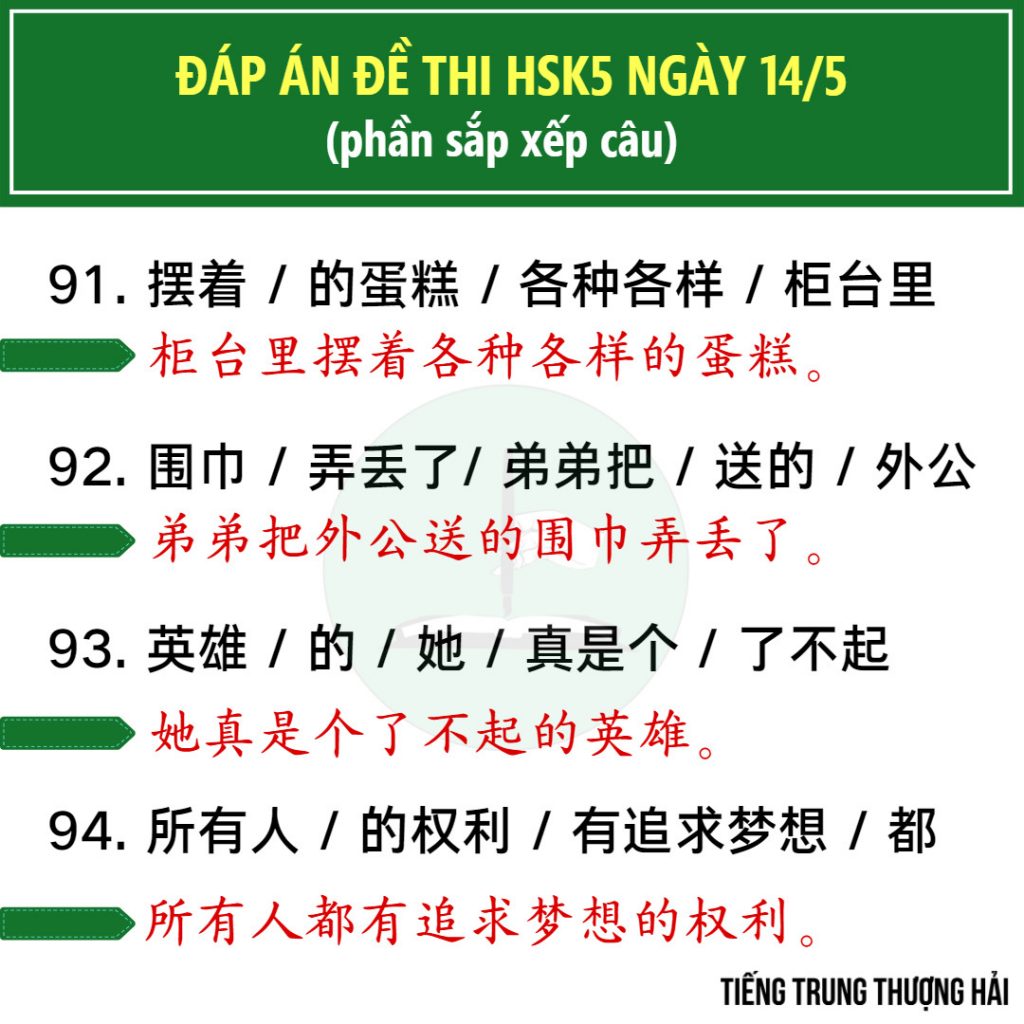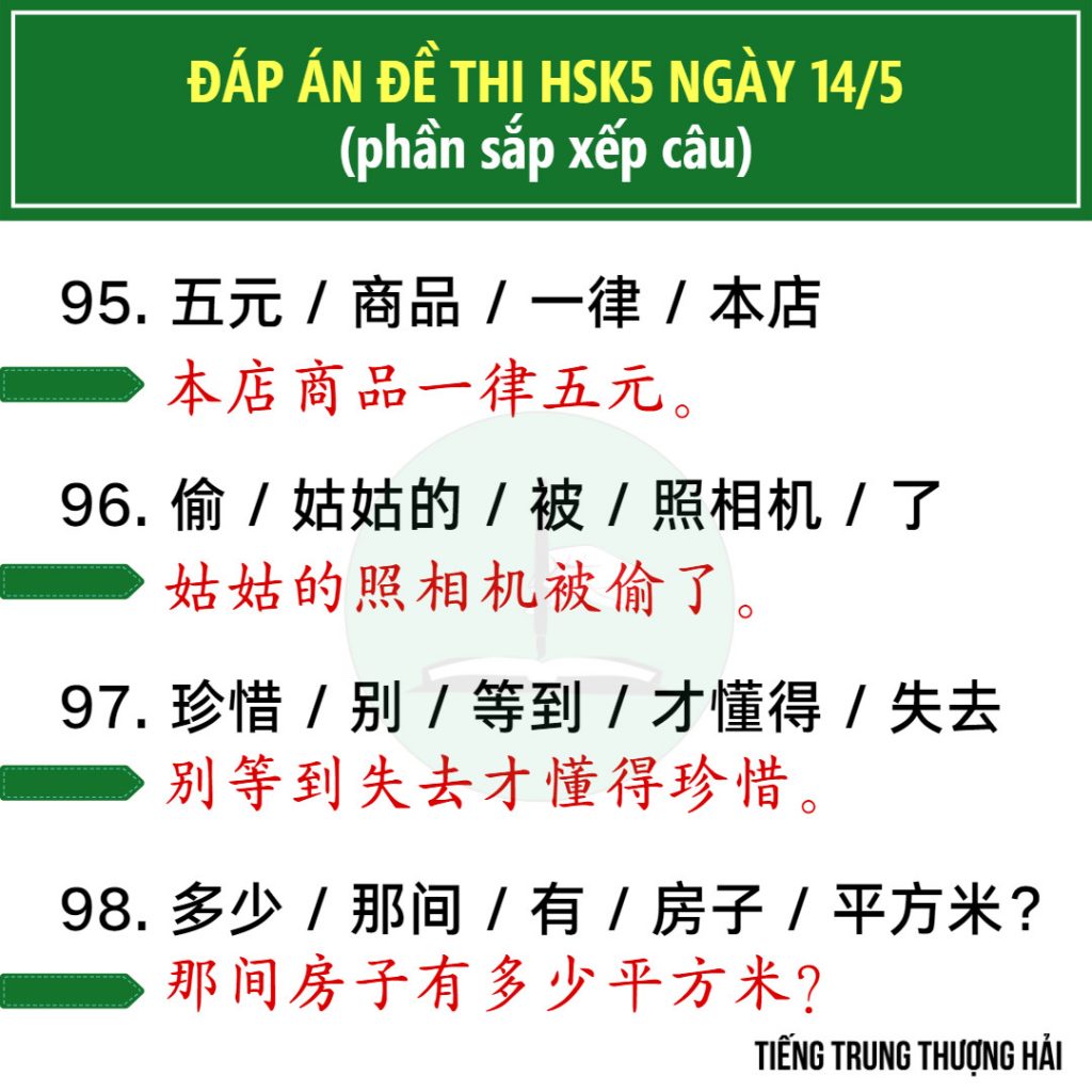 III. ĐÁP ÁN THAM KHẢO CÂU 100 HSK5 KỲ THI THẬT NGÀY 16-5-2022