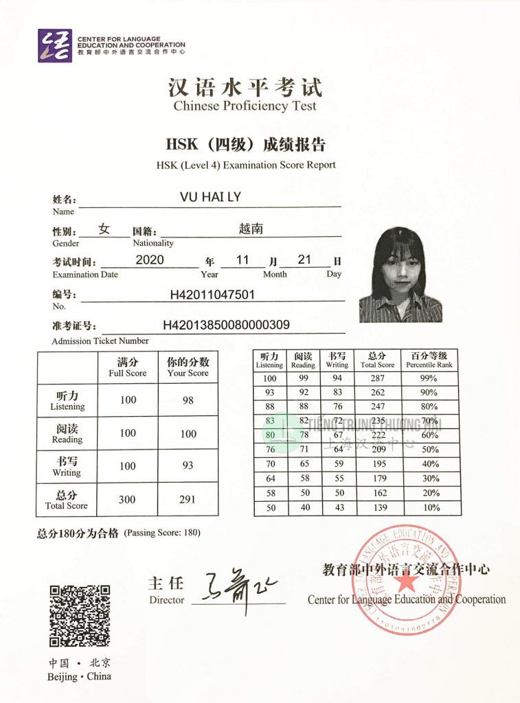Kinh nghiệm nắm trọn 100 điểm phần đọc HSK 4 của bạn Vũ Hải Ly: